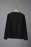 ラグランスリーブでカジュアルさを出しつつ、メリヤス素材で落ち着きも醸し出すロングスリーブTシャツ。