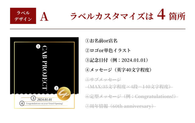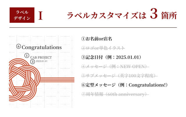 ロゴやメッセージを自由にデザインできる「ラベルのオリジナルデザイン」と、テンプレートからデザインを選んでメッセージを変更できる「パターンオーダー」をご用意しております。